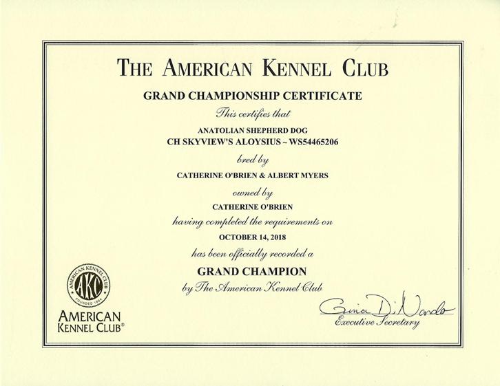 Aloysius - becomes a Grand Champion!
