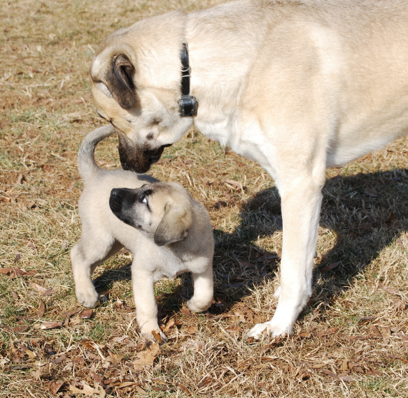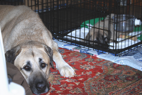 ![]() Duke babysitting little Count in his crate. |